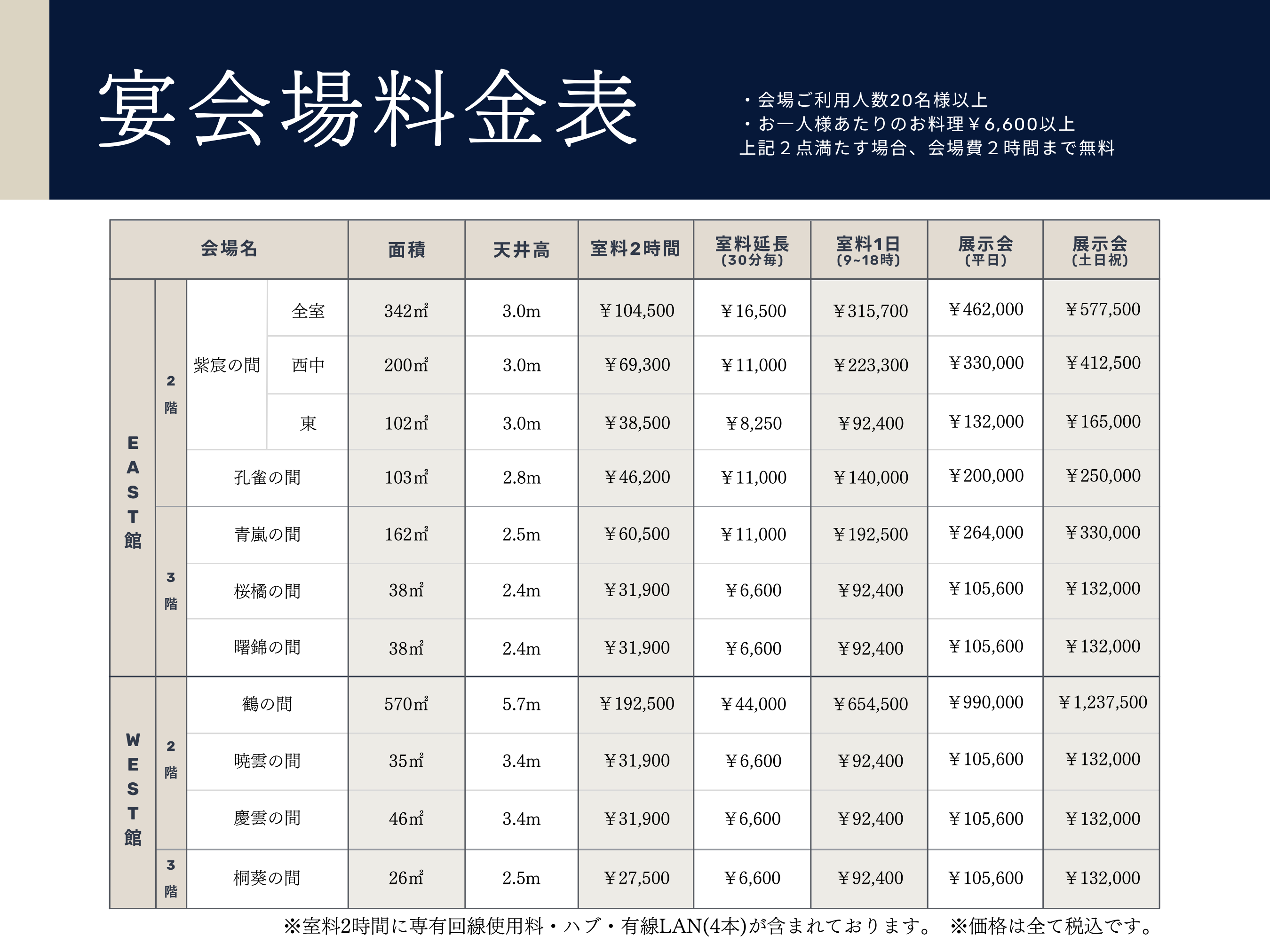 これに伴い会場料金を下記の通り改定させていただきます。